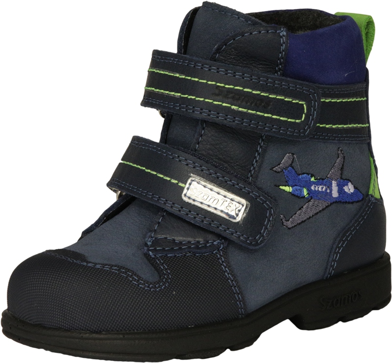 Szamos két tépőzáras, kék színű, Tex-es (vízálló), bélelt fiú csizma, oldalán repülő mintával