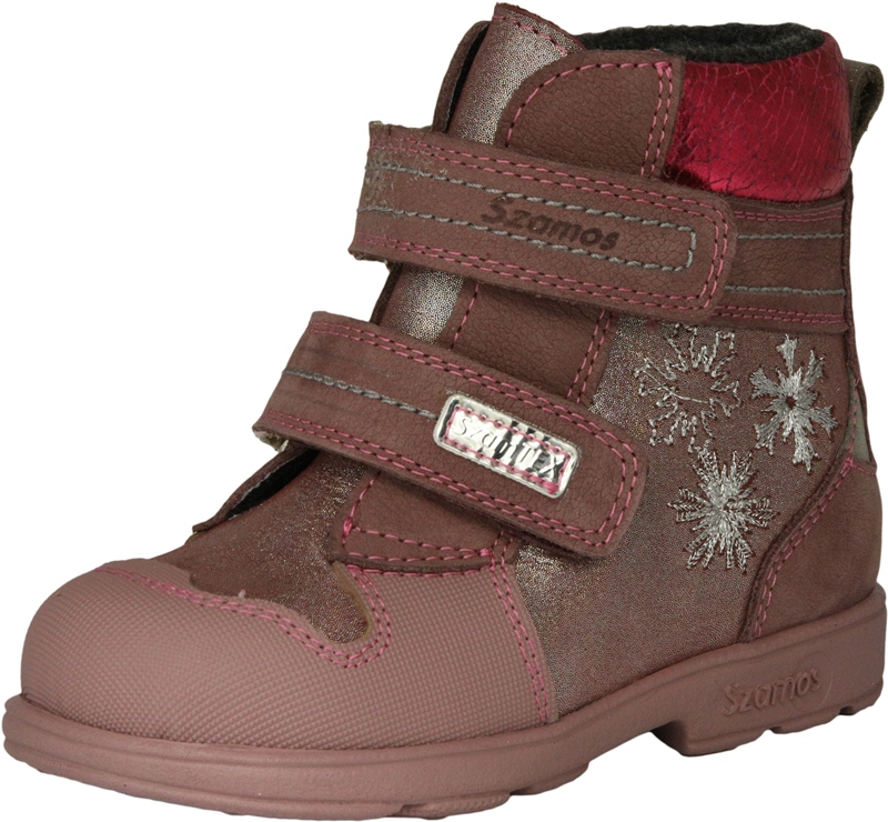 Szamos két tépőzáras, mályva-ezüst-fuxia színű, Tex-es (vízálló), bélelt lány csizma, oldalán hópihe mintával