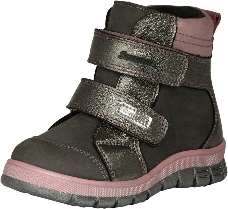 Szamos két tépőzáras, szürke-ezüst-pink színű, Tex-es (vízálló), bélelt lány csizma
