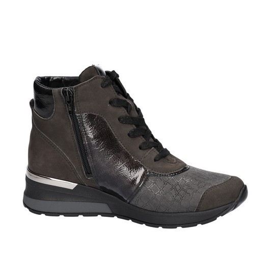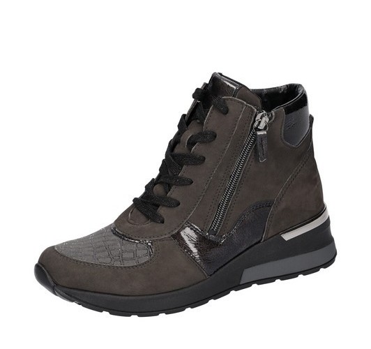 Waldlaufer carbon színű, fűzős, két oldalán cipzáros női vékony béléses bokacsizma