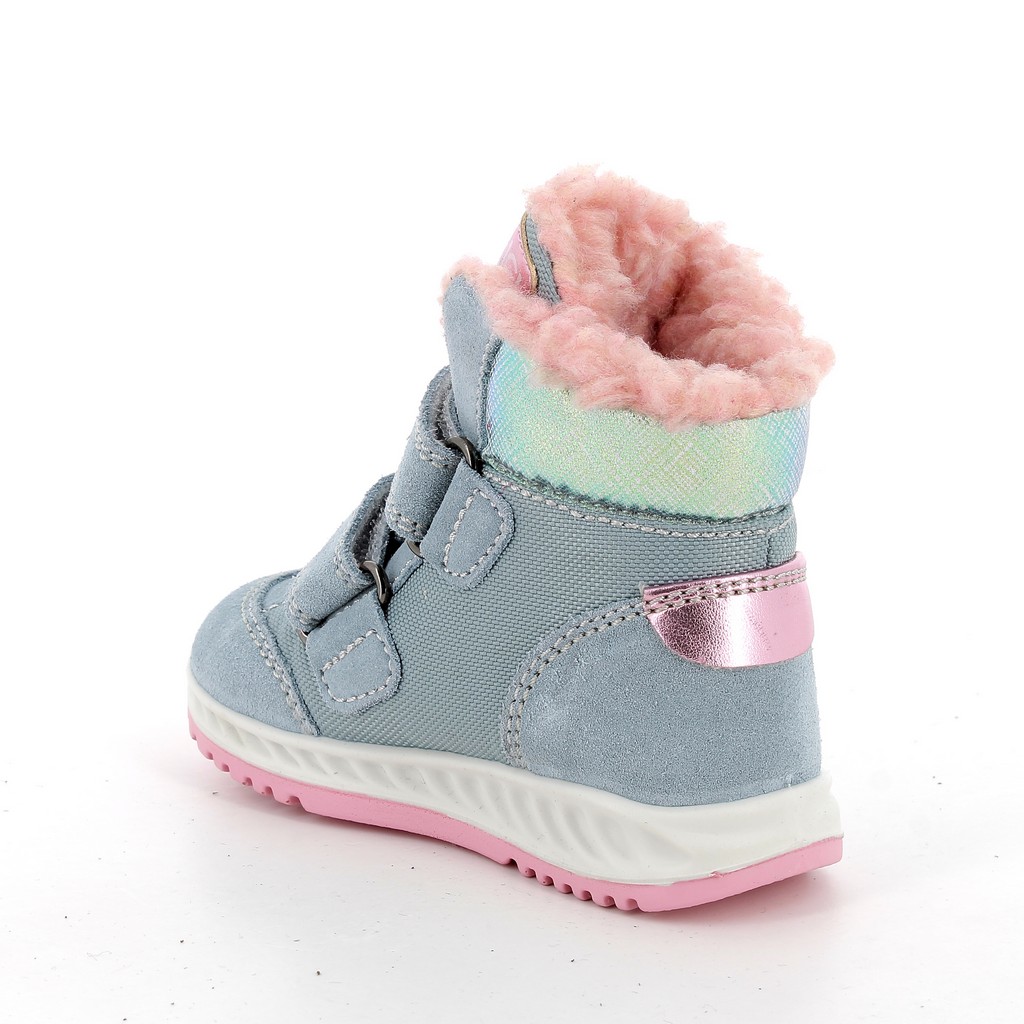 Primigi két tépőzáras, világoskék-rózsaszín színű, vízálló (Gore-Tex membrán), bélelt lány csizma, oldalán felirattal