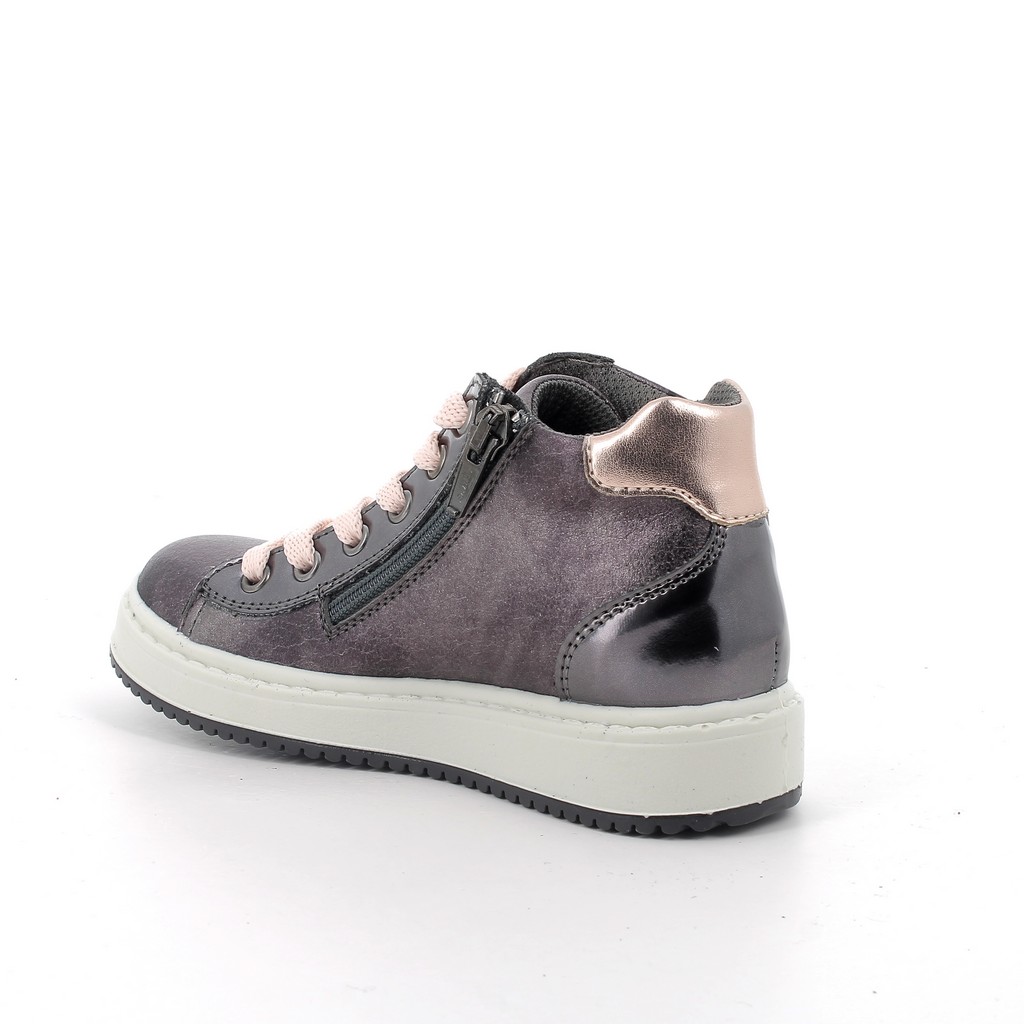 Primigi fűzős és cipzáros, szürke-rosegold színű lány száras cipő, oldalán felirattal és szív mintával