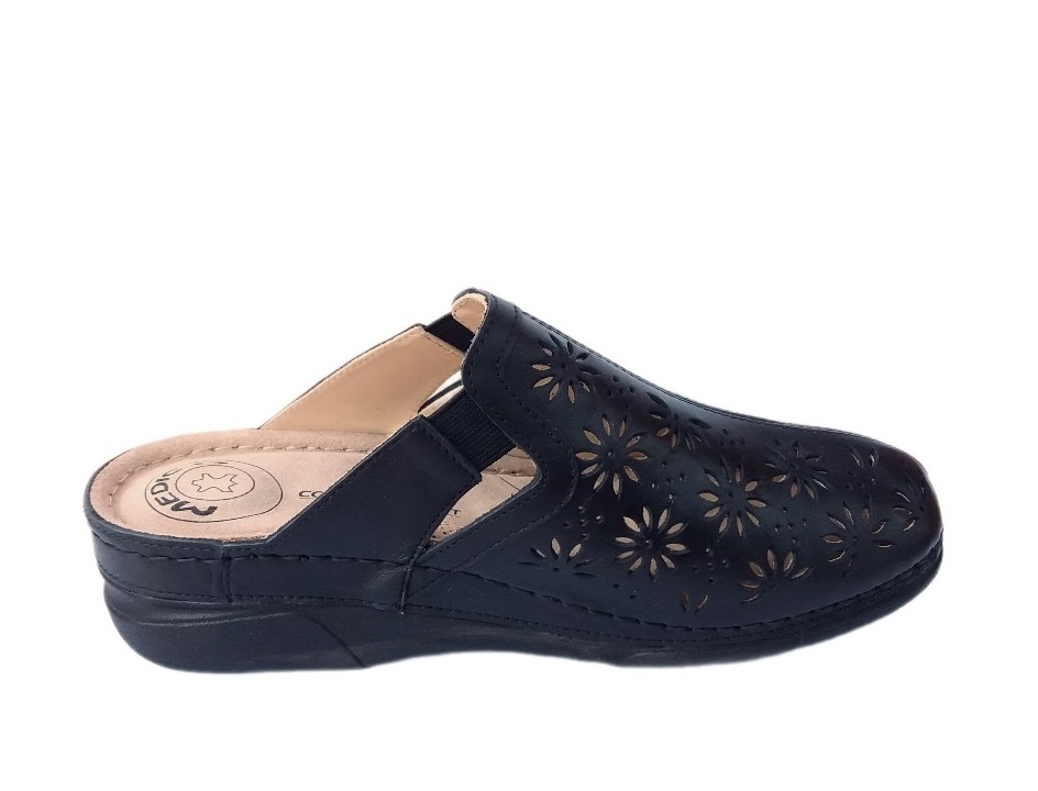 Medic-o 5 zónás (reflexzónás masszírozós lábágy), lyukacsos, fekete színű női klumpa
