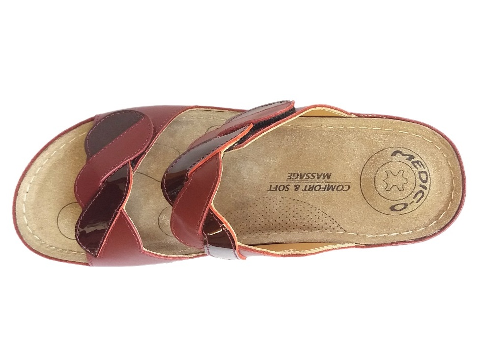 MEDIC-O bordó színű, 5 zónás (reflexzónás masszírozós lábágy), fonott hatású két tépőzáras női papucs