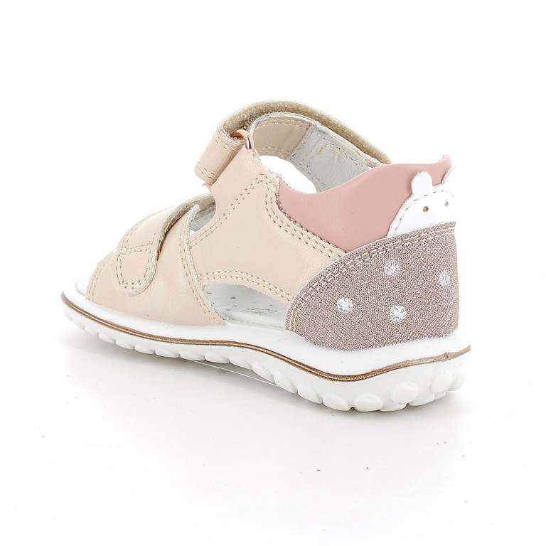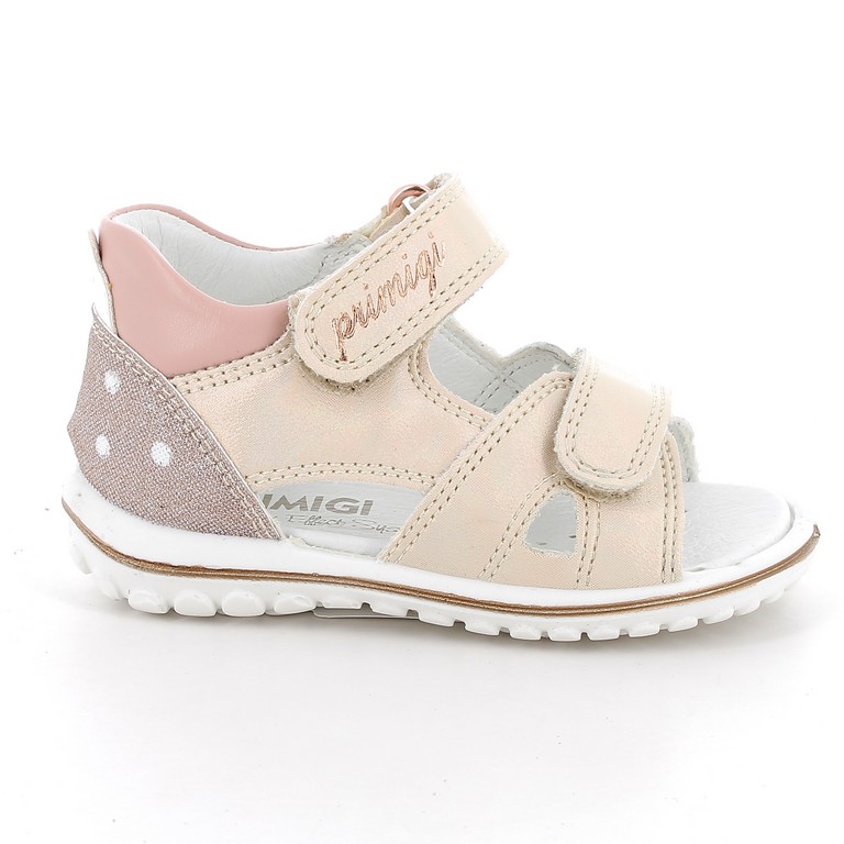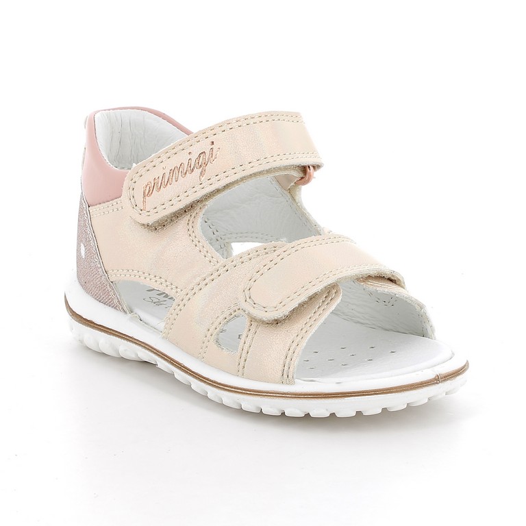 Primigi két tépőzáras, zárt kérgű, beige-mályva színű lány szandál, sarkán csillámos betét