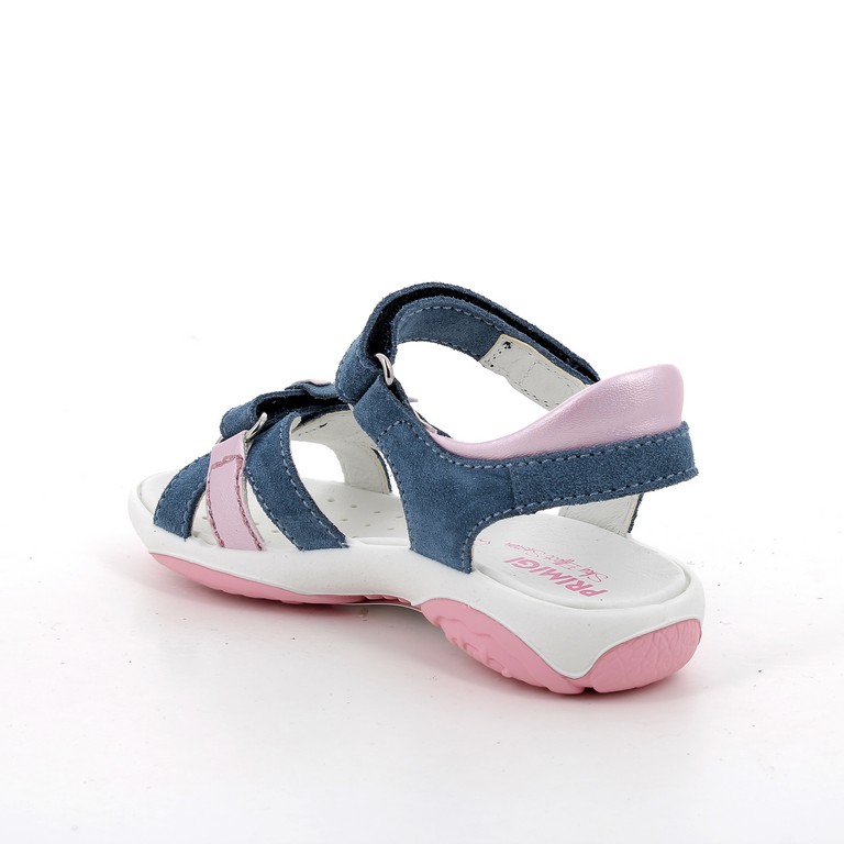 Primigi két tépőzáras, hátul nyitott kérgű, kék-rózsaszín színű lány szandál, első pánton pillangó díszítéssel