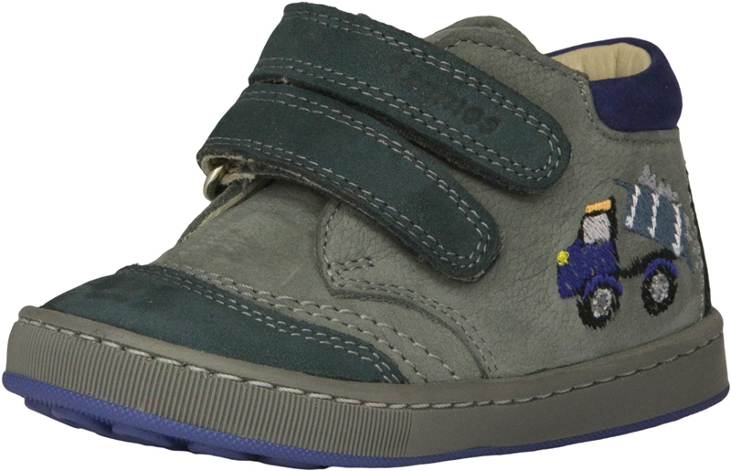 Szamos két tépőzáras, szürke-kék színű fiú cipő, teherautó hímzéssel az oldalán
