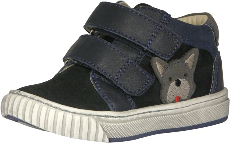 Szamos két tépőzáras, kék-szürke színű fiú cipő, kutyus hímzéssel az oldalán