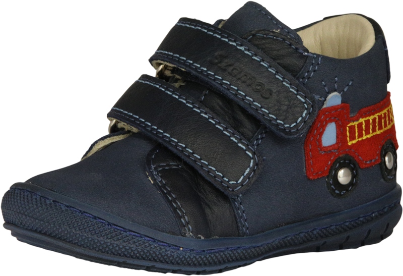 Szamos két tépőzáras, kék színű fiú cipő, oldalán tűzoltóautó mintával
