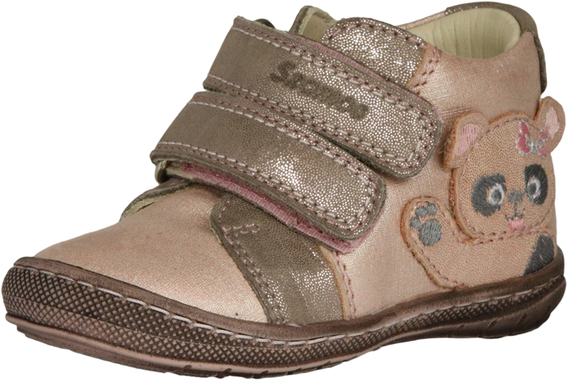 Szamos két tépőzáras, rózsaszín-homok színű lány cipő, oldalán maci mintával