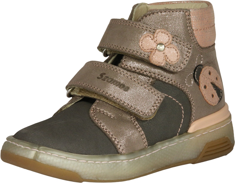 Szamos két tépőzáras, szürke-homok-rózsaszín színű lány száras cipő, oldalán katica mintával