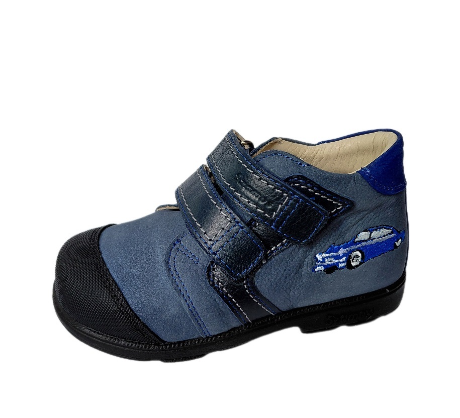 Szamos két tépőzáras, kék színű fiú cipő, oldalán autó mintával