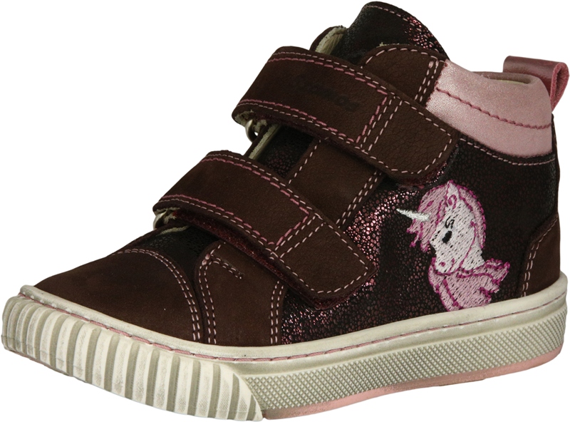Szamos két tépőzáras, bordó-pink színű lány félmagas szárú cipő, oldalán unikornis mintával