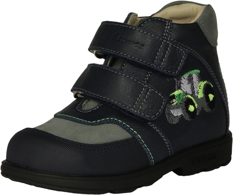 Szamos két tépőzáras, szürke-kék színű fiú száras cipő, oldalán traktor mintával