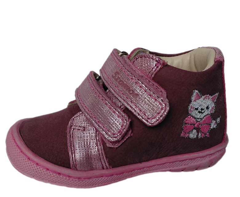 Szamos két tépőzáras, mályva-pink színű lány cipő, oldalán kiscica hímzéssel