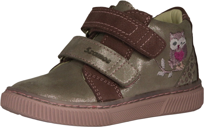Szamos két tépőzáras, mályva-homok színű lány cipő, oldalán bagoly mintával