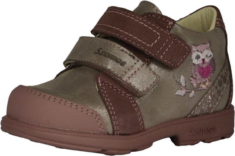 Szamos két tépőzáras, mályva-homok színű lány cipő, oldalán bagoly mintával