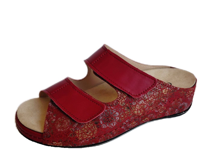 Csa-La két tépőzáras, bordó és virágmintás színű női papucs