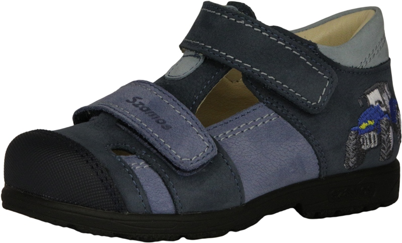 Szamos két tépőzáras, kék színű fiú szandálcipő, oldalán traktor mintával