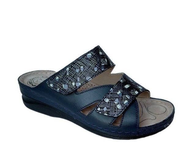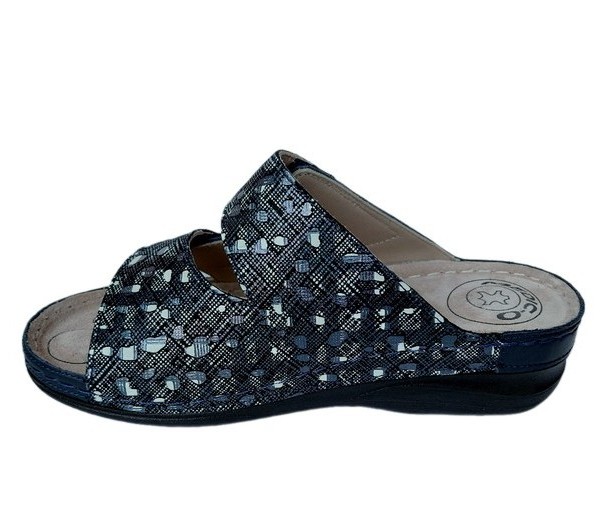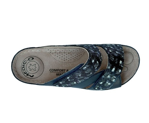 MEDIC-O sötétkék színű, fehér kockamintás, két tépőzáras, 5 zónás (reflexzónás masszírozós lábágy) női papucs