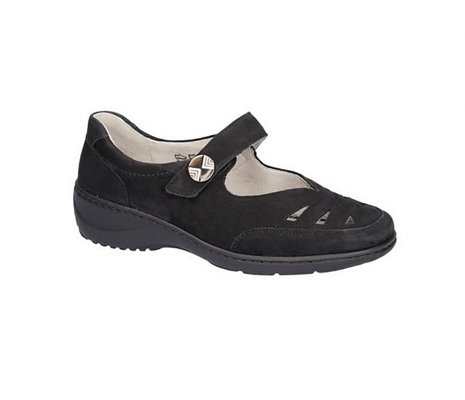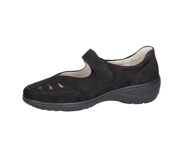 Waldlaufer fekete színű, a lábfejrészen kivágásokkal tarkított, tépőzáras női ballerina jellegű cipő
