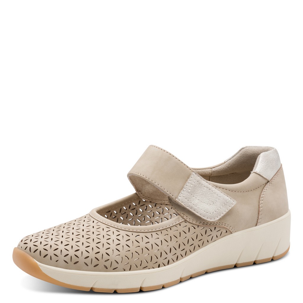 Jana beige színű, lyukacsos női ballerina jellegű tépőzáras cipő
