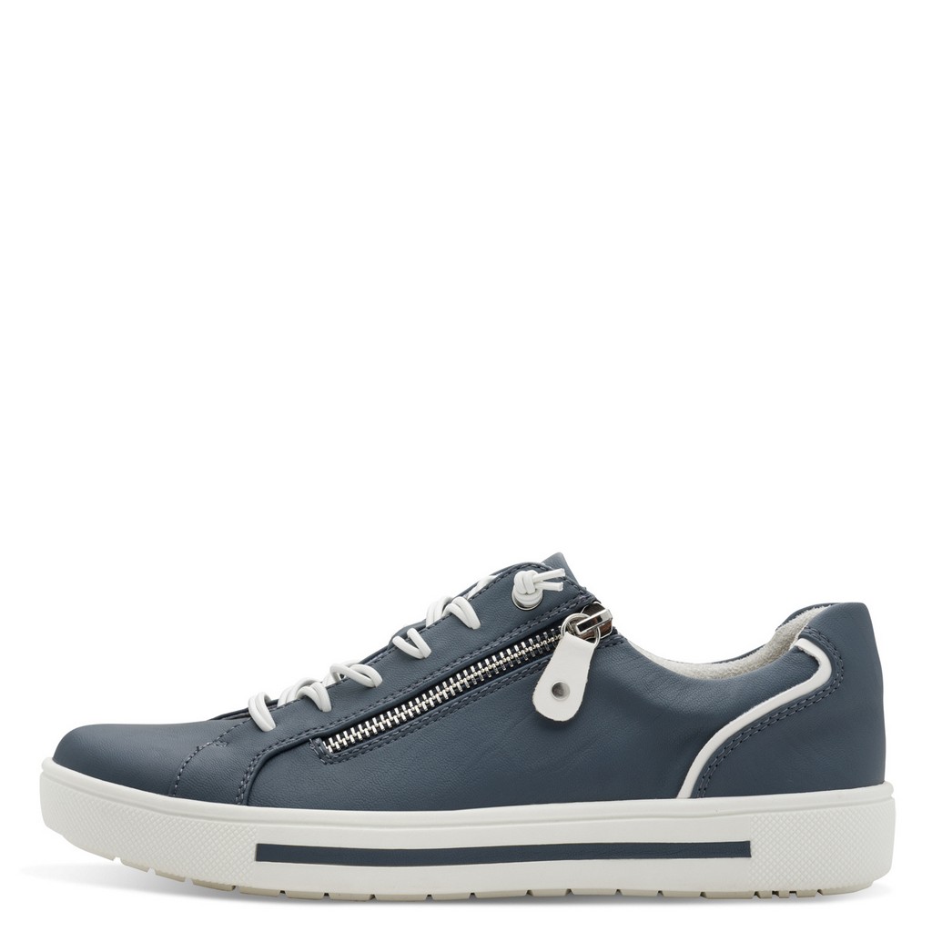 JANA sötétkék színű, gumifűzős, külső oldalán cipzáros női cipő