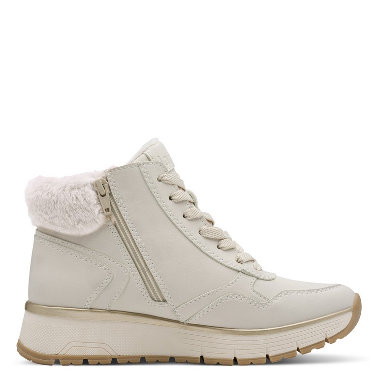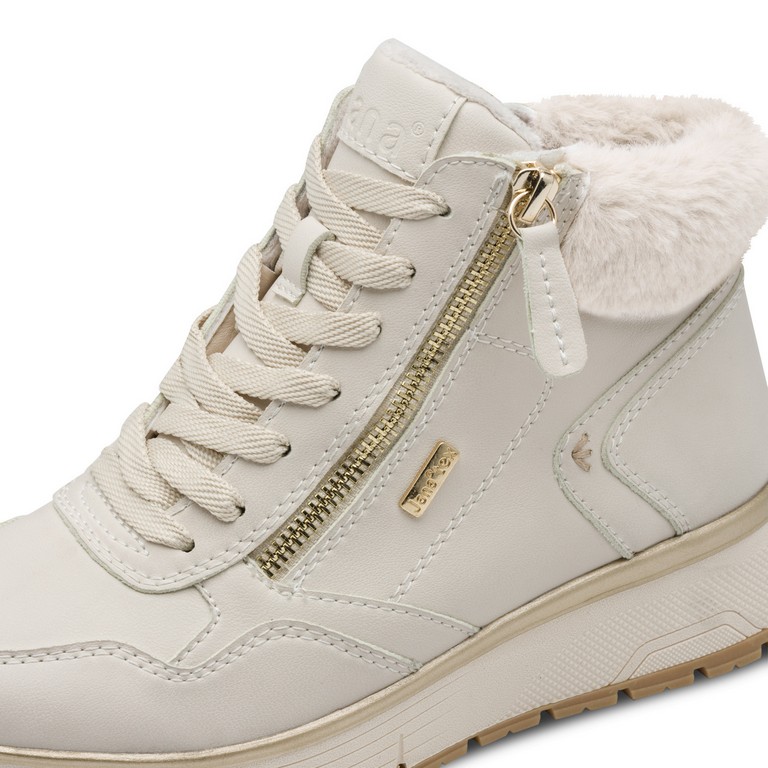 JANA beige színű, fűzős, belső oldalán cipzáros (külső oldalán csak díszítés), vízálló/vízlepergetős (Jana-Tex) női bokacsizma