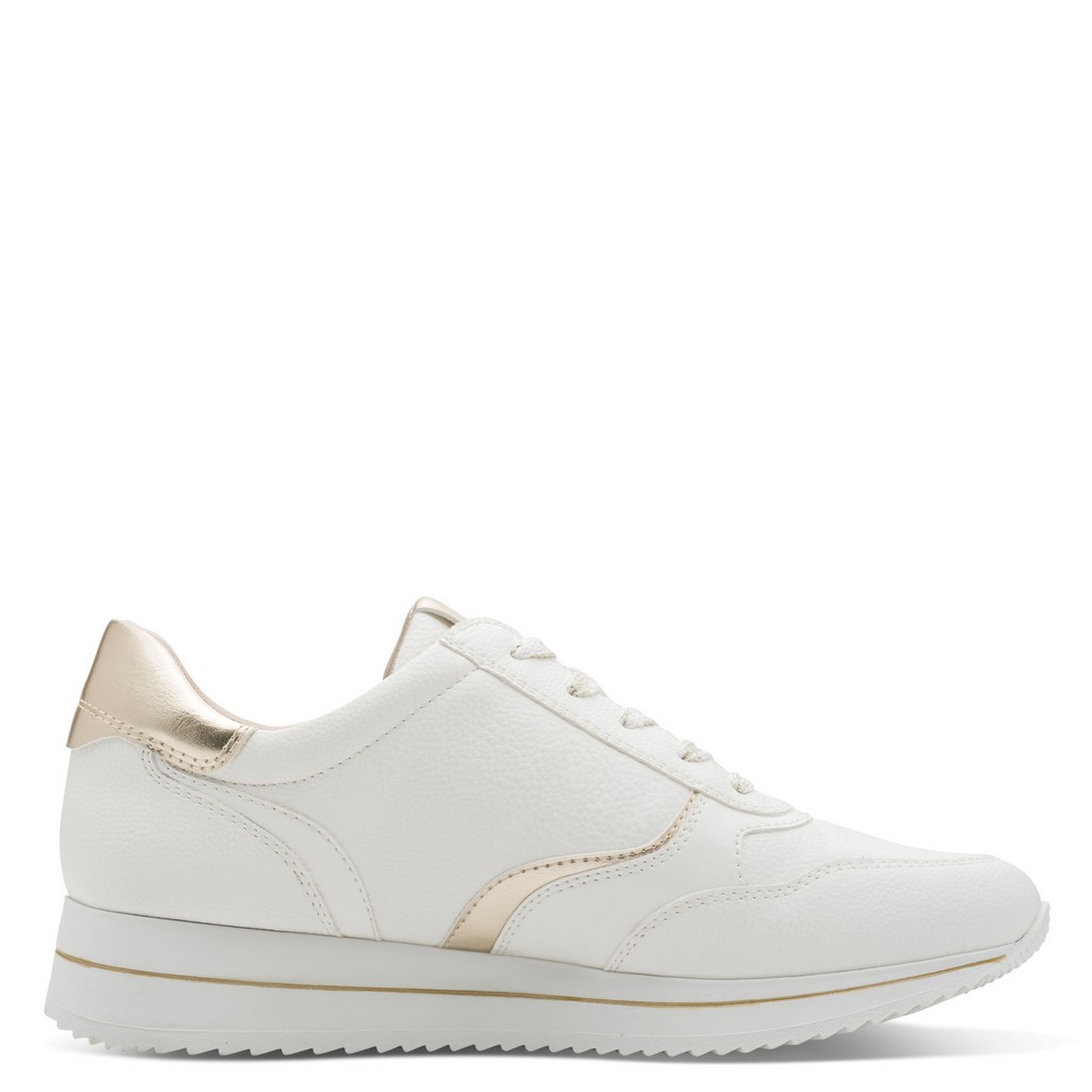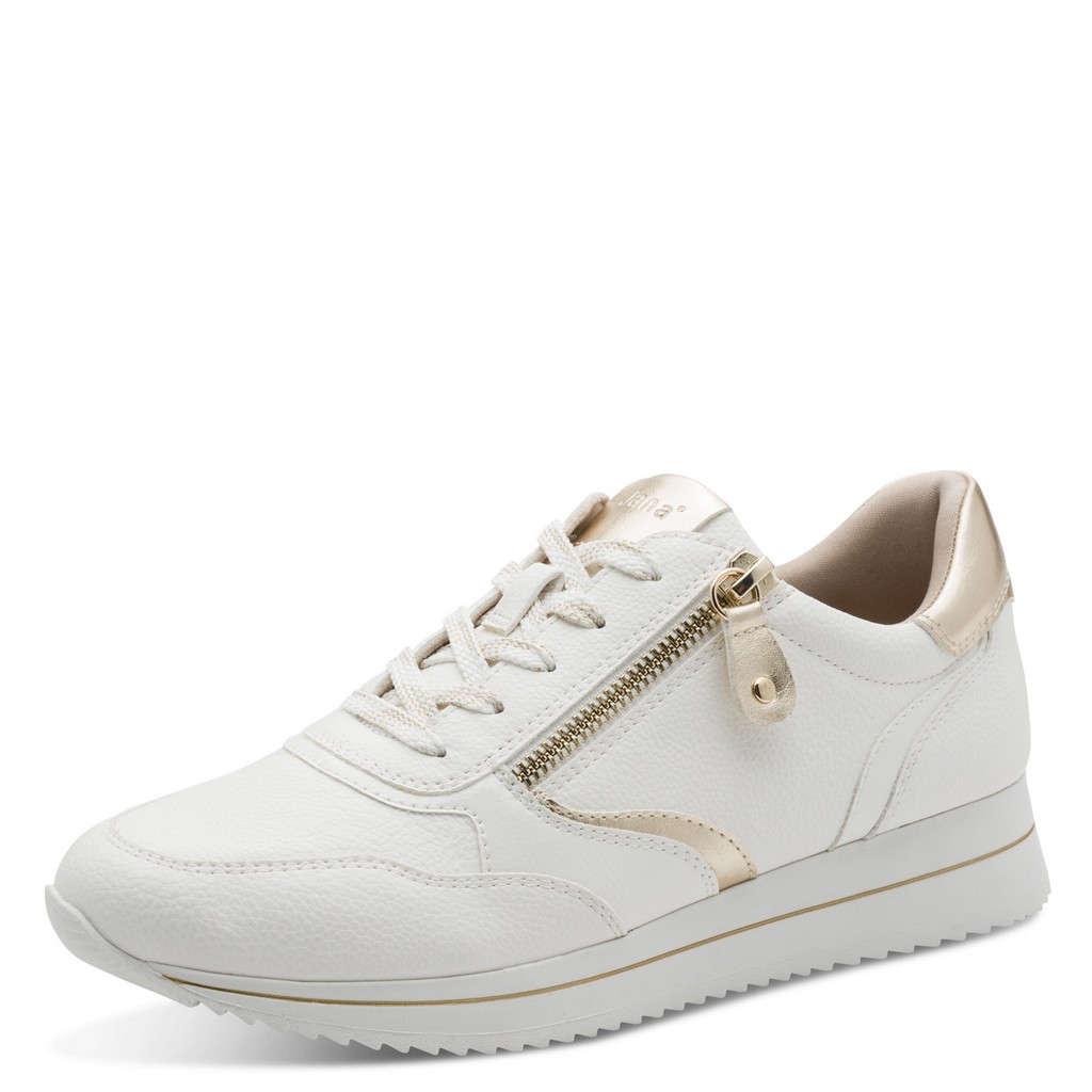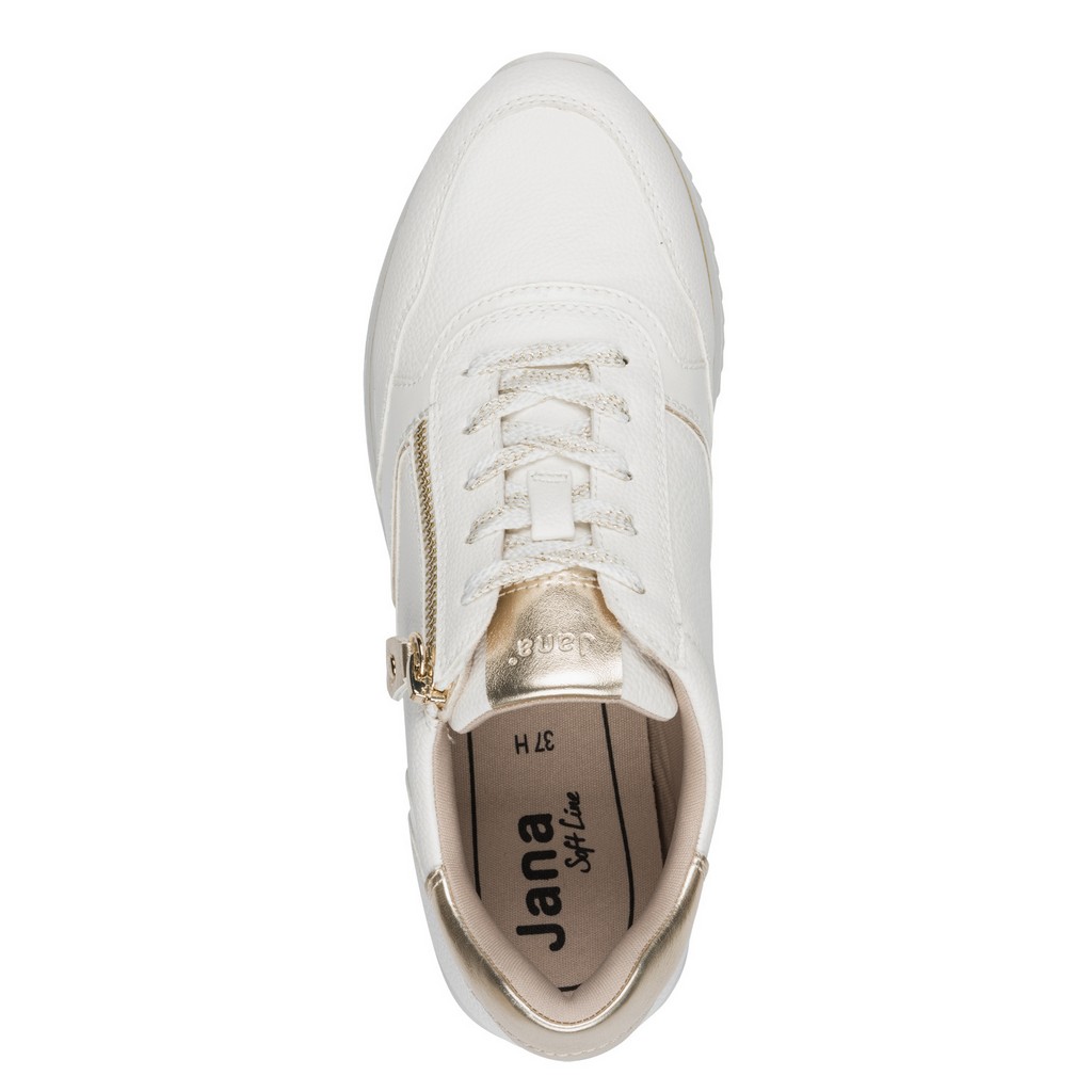 JANA fehér színű, arany betétekkel kombinált, fűzős, külső oldalán cipzáros női cipő