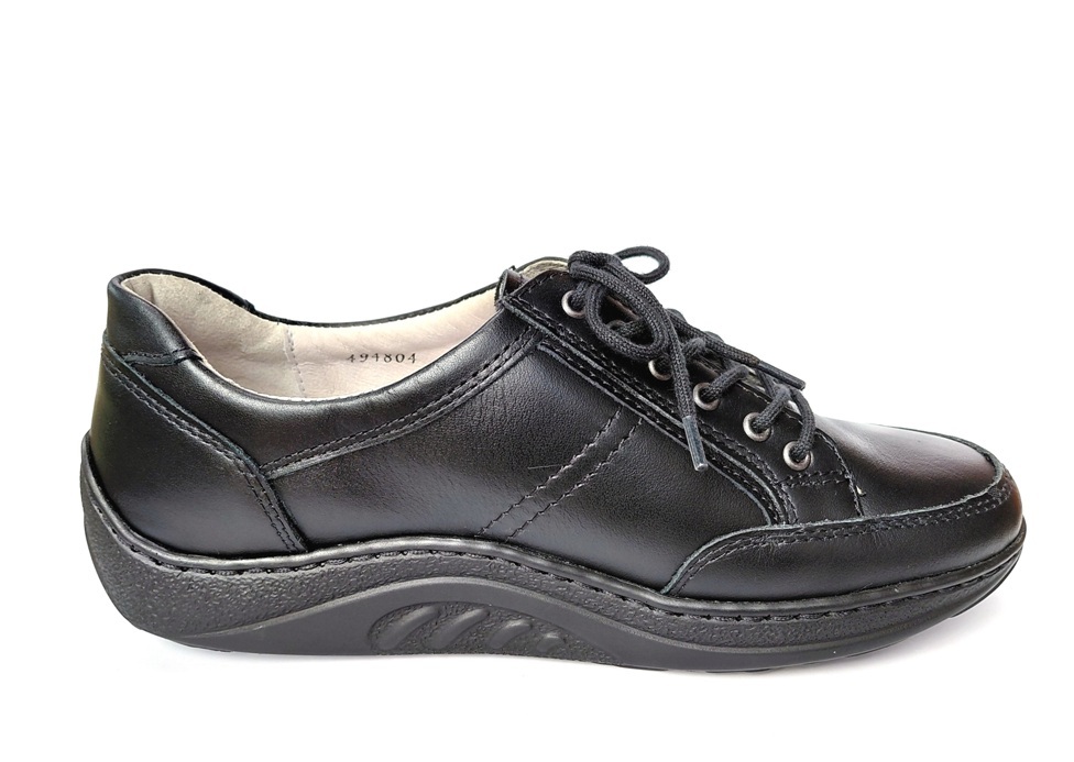 Waldlaufer Dynamic (enyhén gördülő talpú), fekete színű, fűzős női cipő