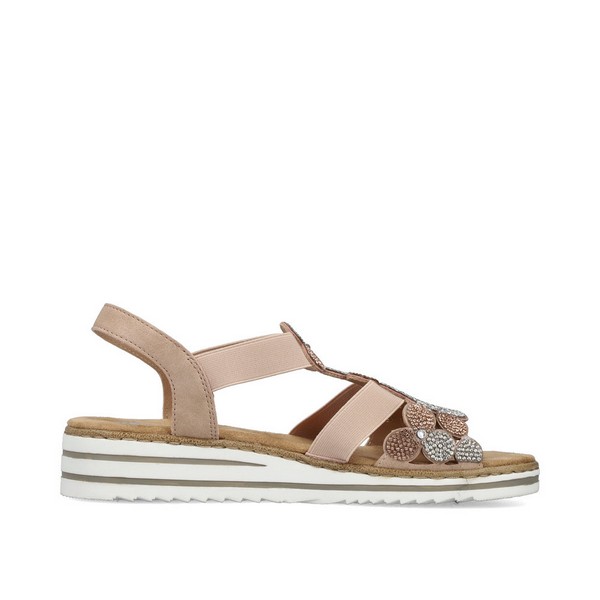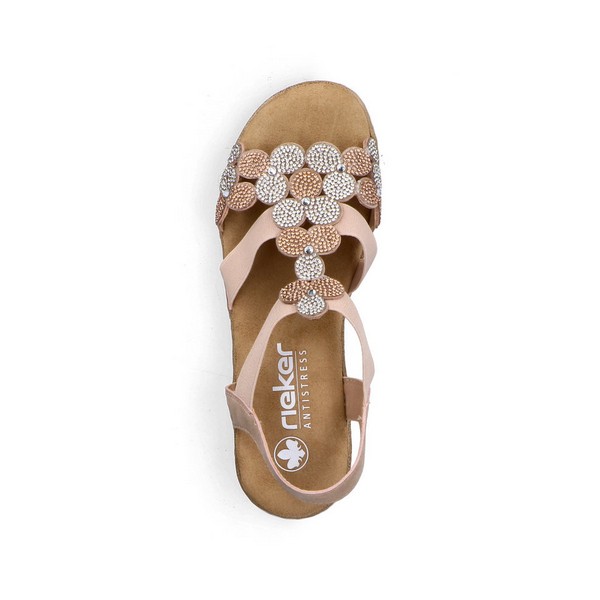RIEKER púder színű, gumipántos, díszített felvezetőpántú női szandál