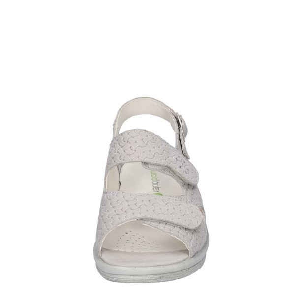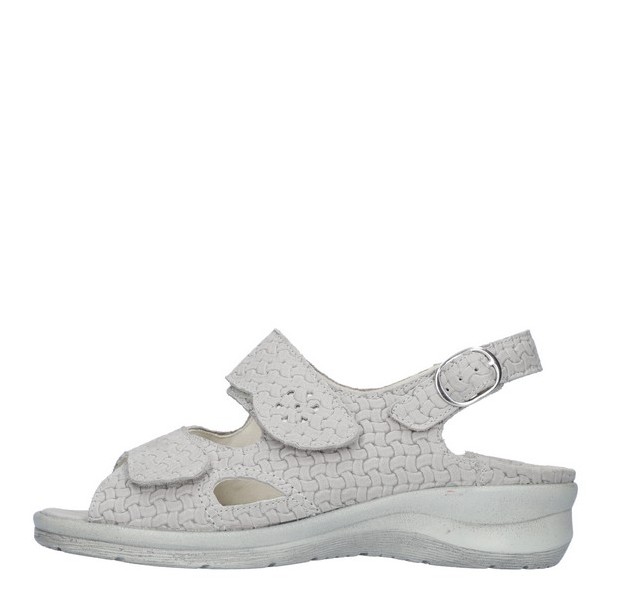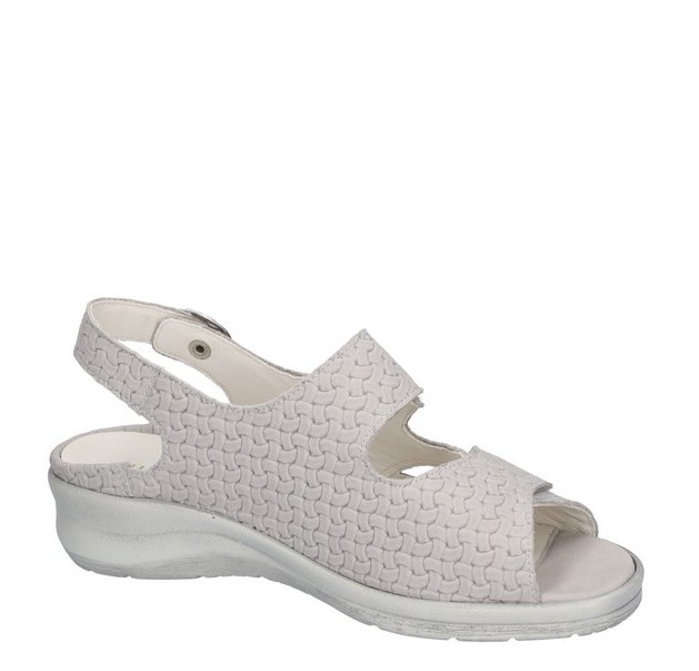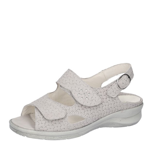 WALDLAUFER szürkésbézs színű, nyomott mintás, két tépőzáras, hátul csattnak álcázott patentos pántú női szandál
