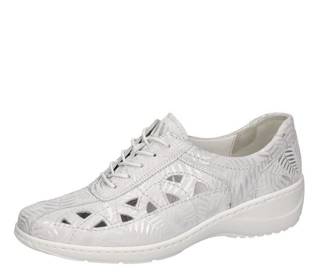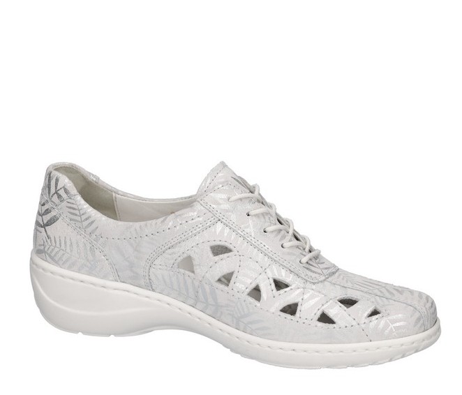 Waldlaufer szürke-ezüst színű, a lábfejrészen kivágásokkal tarkított, fűzős női cipő