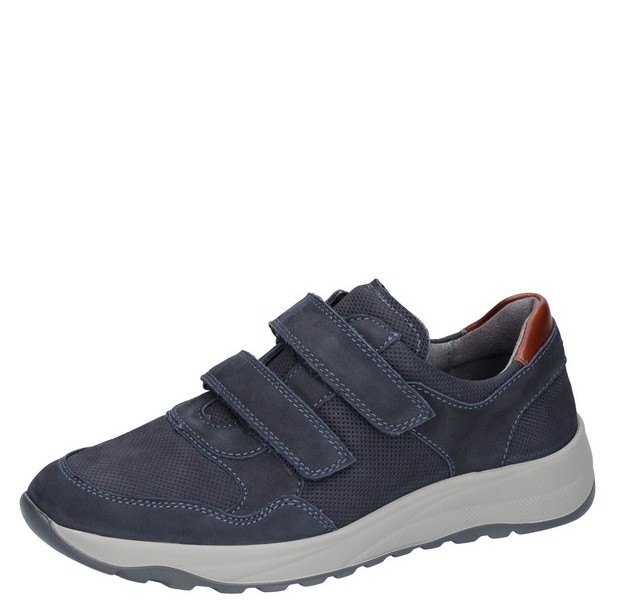 Waldlaufer két tépőzáras, sötétkék színű, sarkánál barna betétes férfi cipő