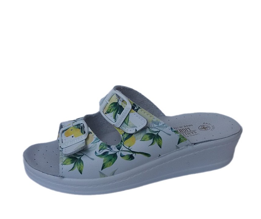 SANITAL LIGHT két csattos, fehér alapon citrom mintás női női papucs