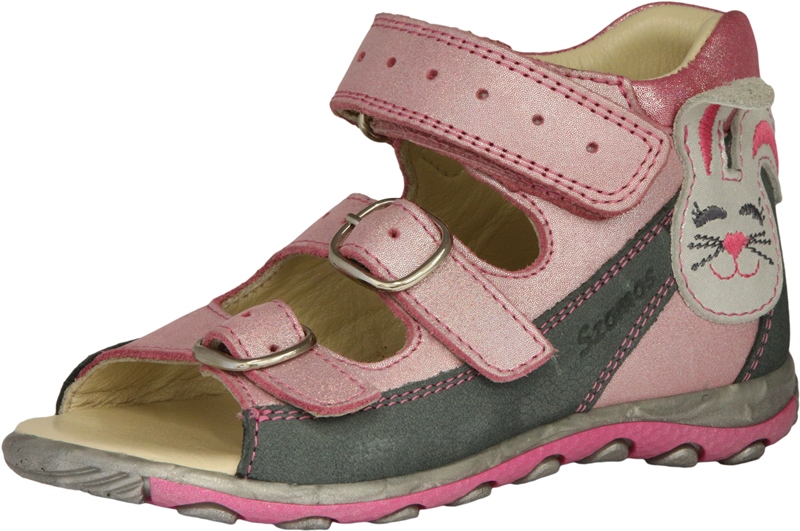 Szamos két csatt és egy tépőzáras, rózsaszín-szürke színű lány szandál, külső oldalán nyuszi mintával