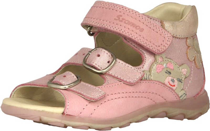 Szamos két csat egy tépőzáras, pink színű lány szandál, oldalán maci és virág mintával