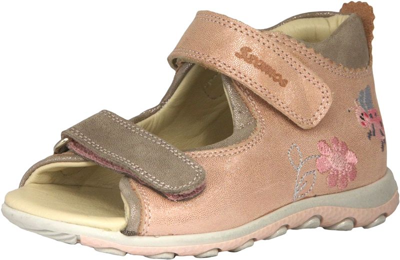 Szamos két tépőzáras, rózsaszín-ezüst színű lány szandál, oldalán katica és virág mintával