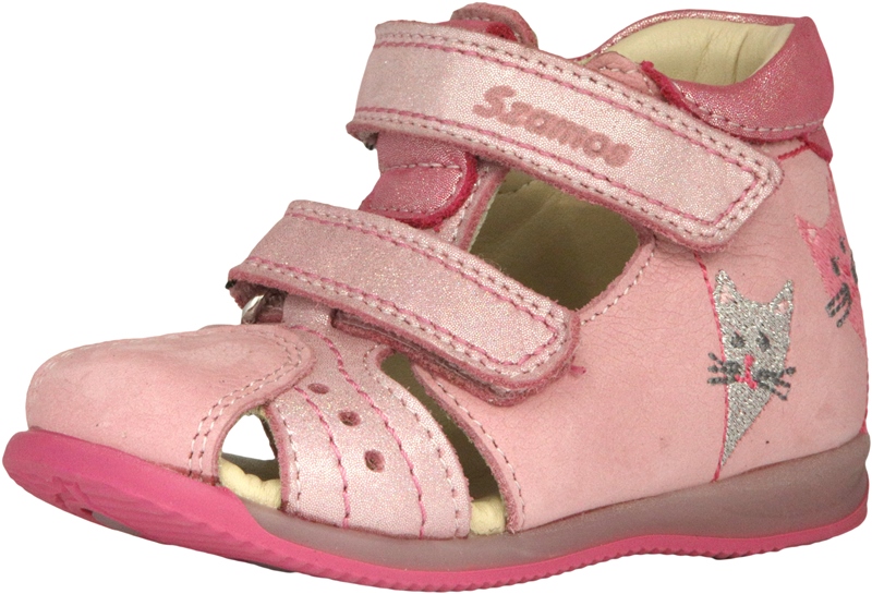 Szamos két tépőzáras, rózsaszín lány orrvédős szandál, külső oldalán cica mintával