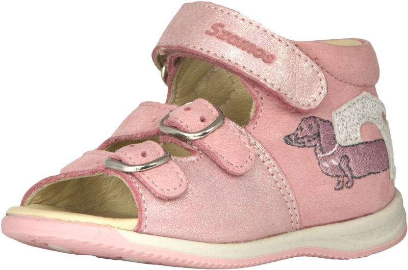 Szamos két csatt egy tépőzáras, pink-ezüst színű lány szandál, oldalán tacskó mintával