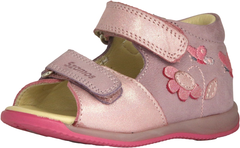 Szamos két tépőzáras, halványlila-pink-fuxia színű lány szandál, külső oldalán virág és pillangó mintával