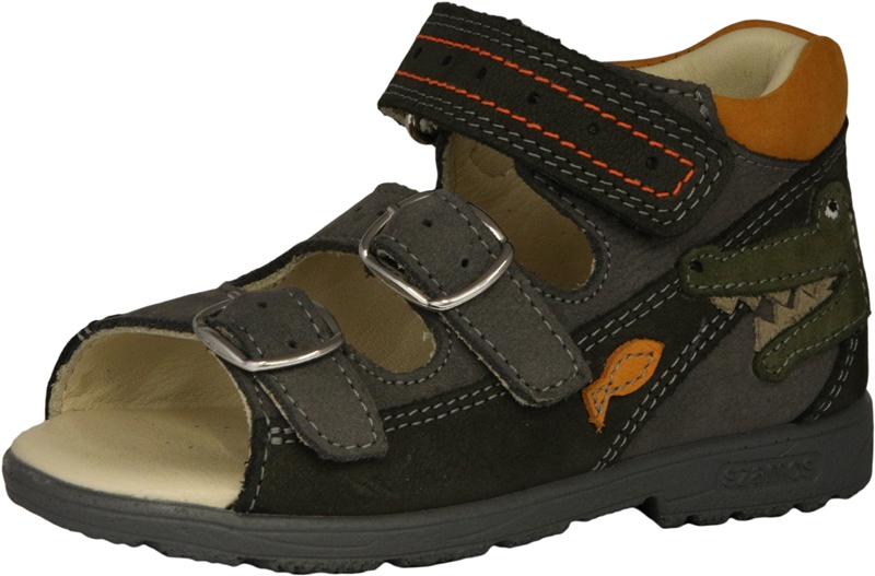 Szamos két csatt, egy tépőzáras, antracit-szürke-narancs színű fiú szandál, oldalán krokodil és hal mintával