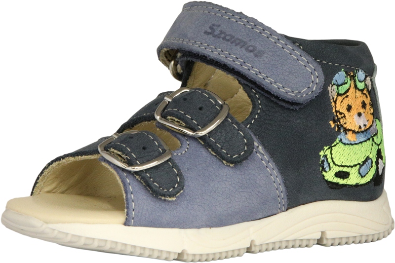 Szamos két csat egy tépőzáras, kék színű fiú szandál, oldalán autós maci mintával