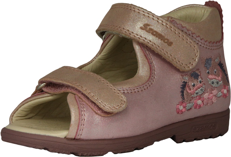 Szamos két tépőzáras, pink-púder színű lány szandál, oldalán lovacska és virág mintákkal