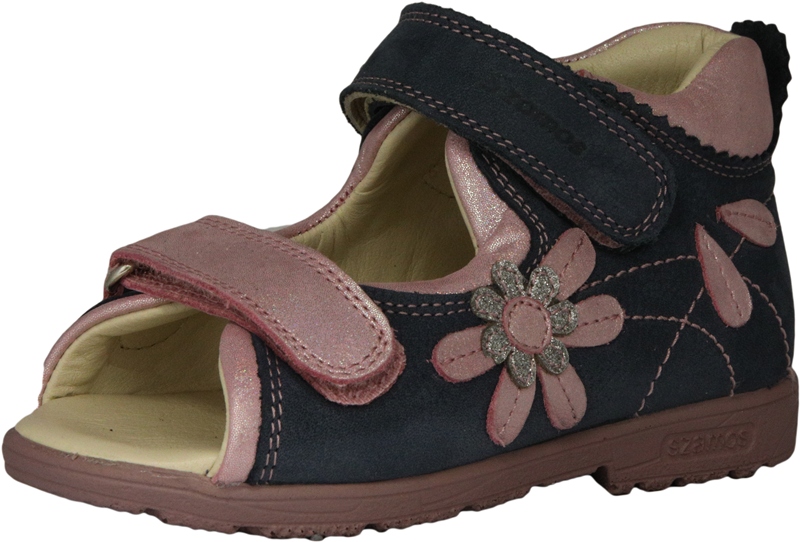 Szamos két tépőzáras, kék-pink-ezüst színű lány szandál, oldalán virág mintákkal