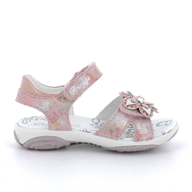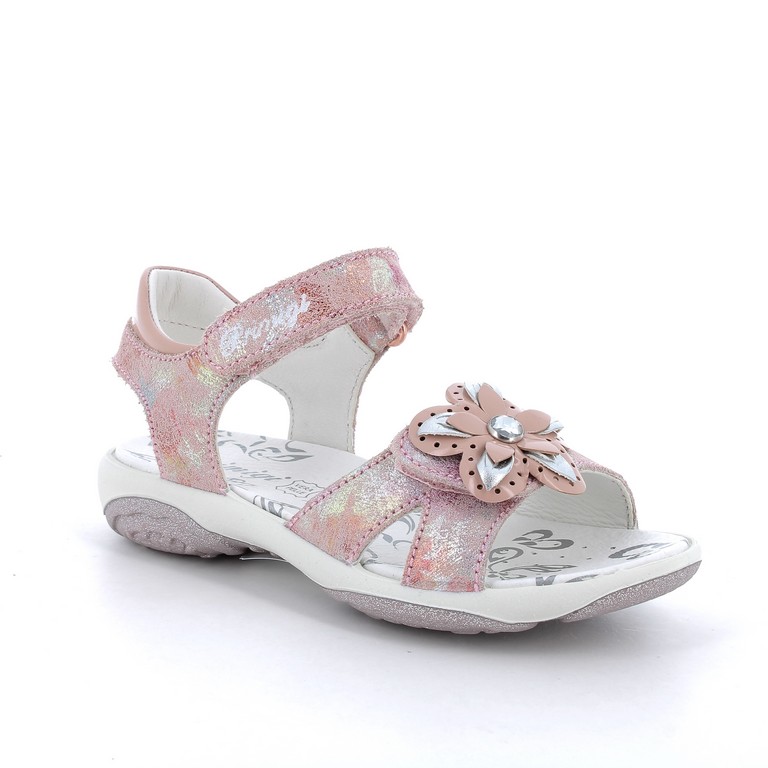PRIMIGI két tépőzáras, hátul nyitott kérgű rózsaszín lány szandál, az első tépőzáron virág dísszel