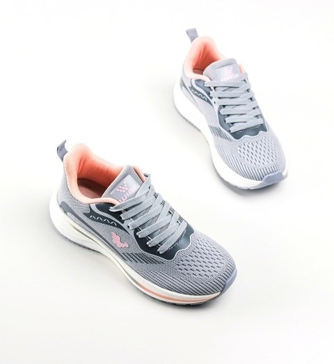 Wink fűzős, világos szürkeszínű női sportcipő, kevés rózsaszín mintával