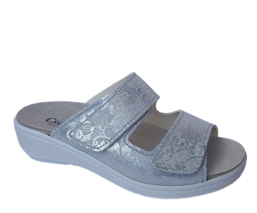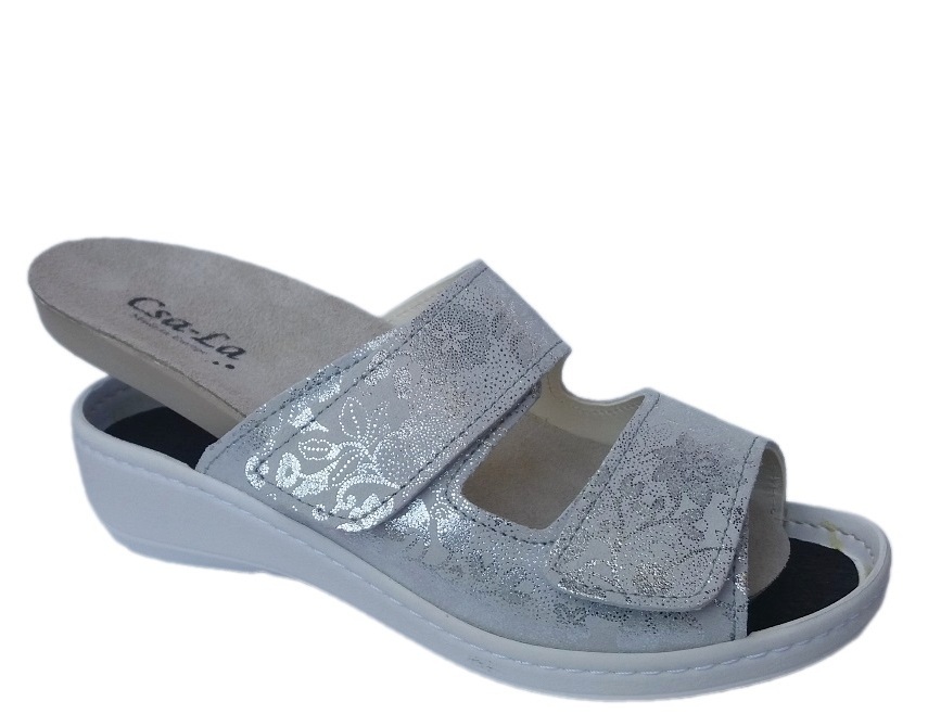Csa-La két tépőzáras, ezüst csillogós színű női papucs
