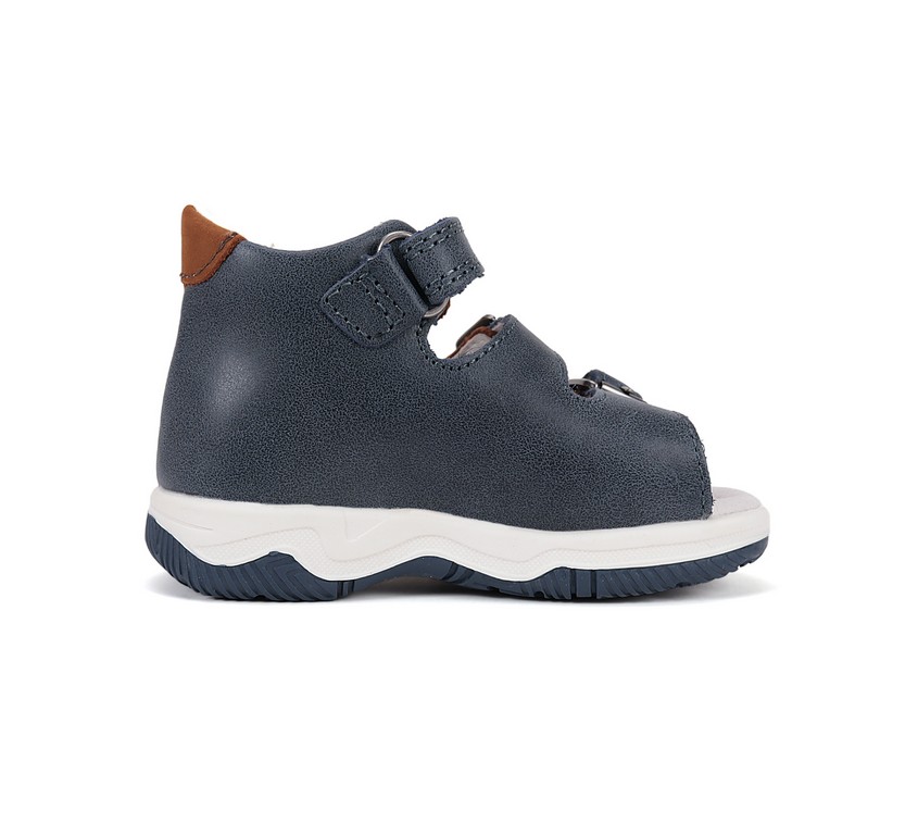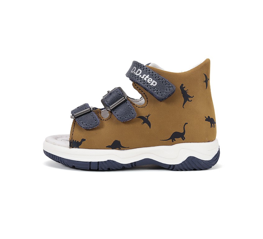 D.D.Step 2 csatt 1 tépőzáras, zárt kérgű, kék-barna színű fiú szandál, oldalán dínó mintákkal