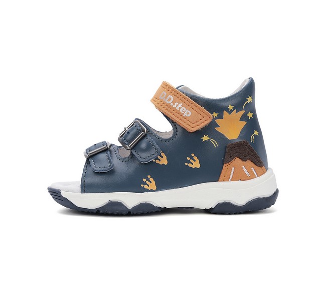 D.D.Step két csatt egy tépőzáras, kék-narancs színű fiú szandál, oldalán tűzhányó mintával